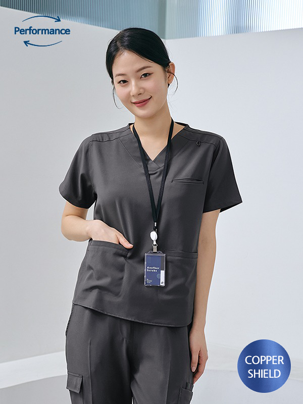Another Scrubs_ET-101W_여성 V넥 히든포켓 카퍼쉴드 스크럽 티셔츠 (4color)