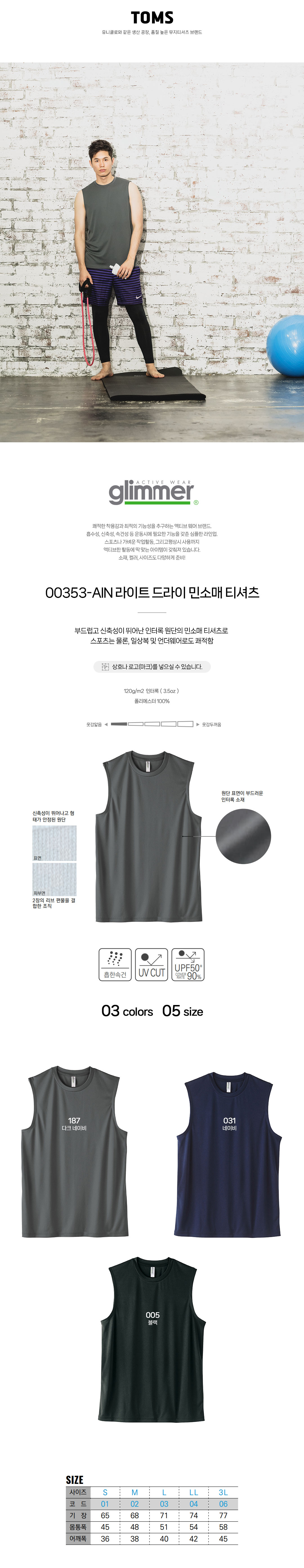 00353-AIN 라이트 드라이 민소매 티셔츠