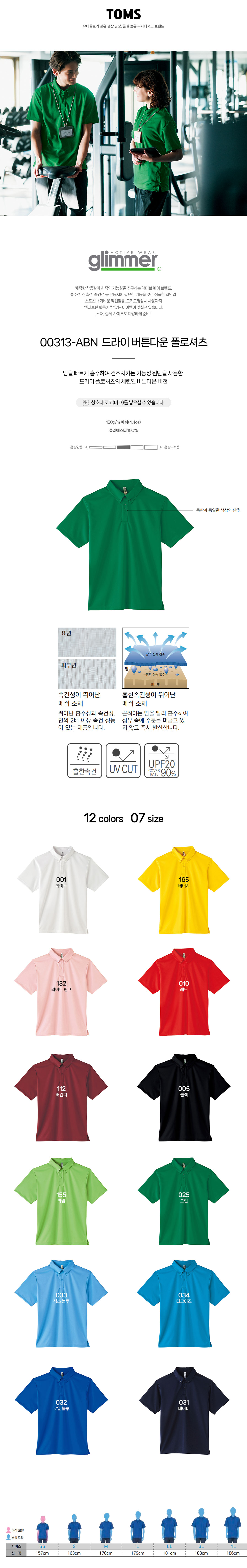 00313-ABN 드라이 버튼다운 폴로셔츠