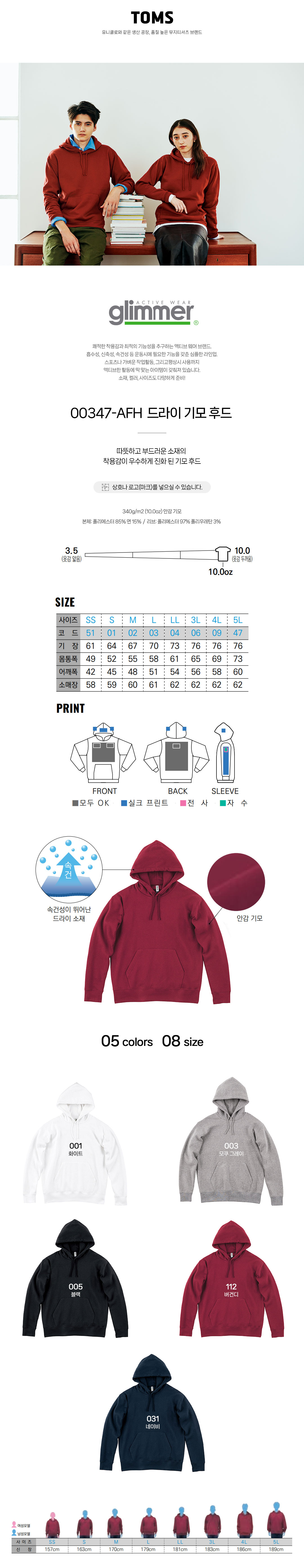 00347-AFH 드라이 기모 후드