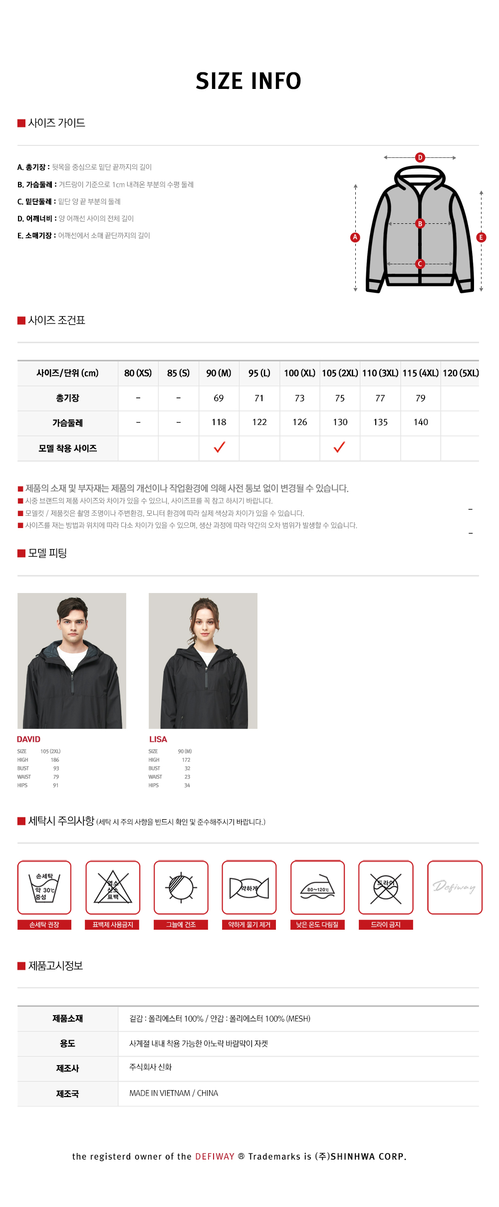 겉감 : 폴리에스터 100% / 안감 : 폴리에스터 100%(MESH)