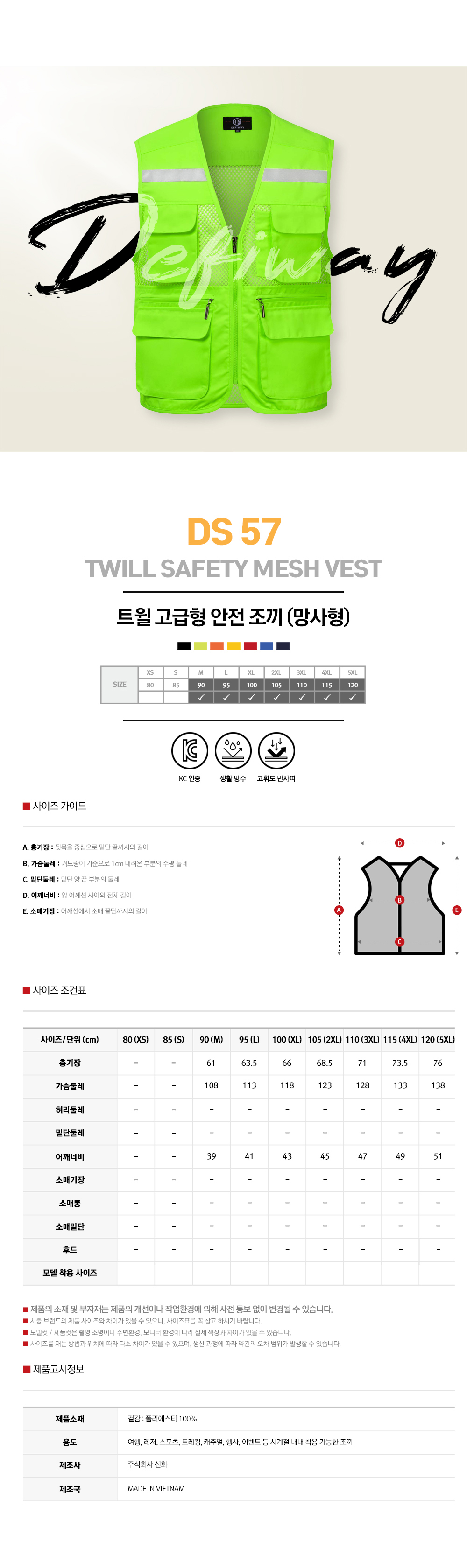 DS57 타스란 반사 조끼 망사형
