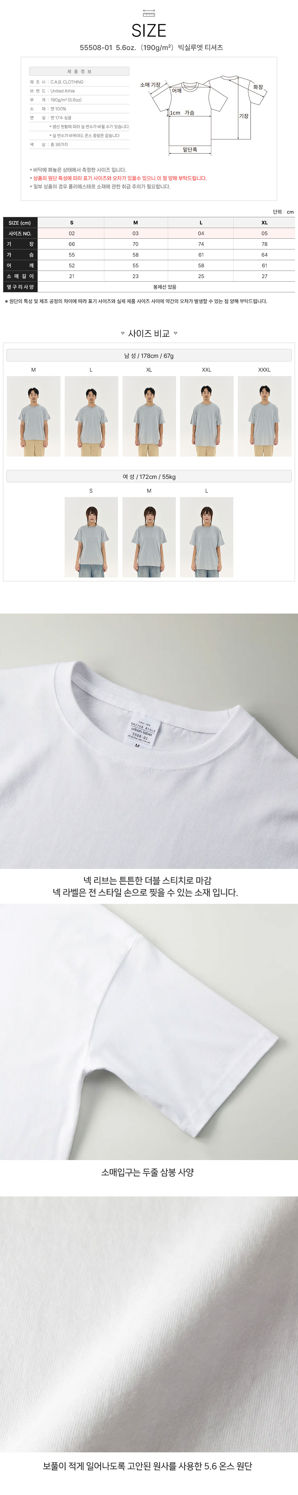 빅실루엣 티셔츠 55508-01 5.6oz.(190g/m²)유나이티드 애슬 United Athle