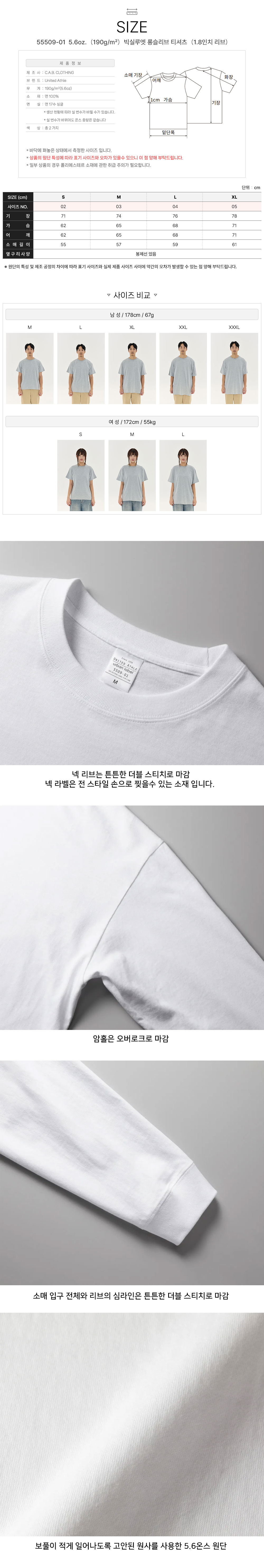 빅실루엣 롱슬리브 티셔츠(1.8인치 리브) 55509-01 5.6oz.(190g/m²) 유나이티드 애슬 United Athle