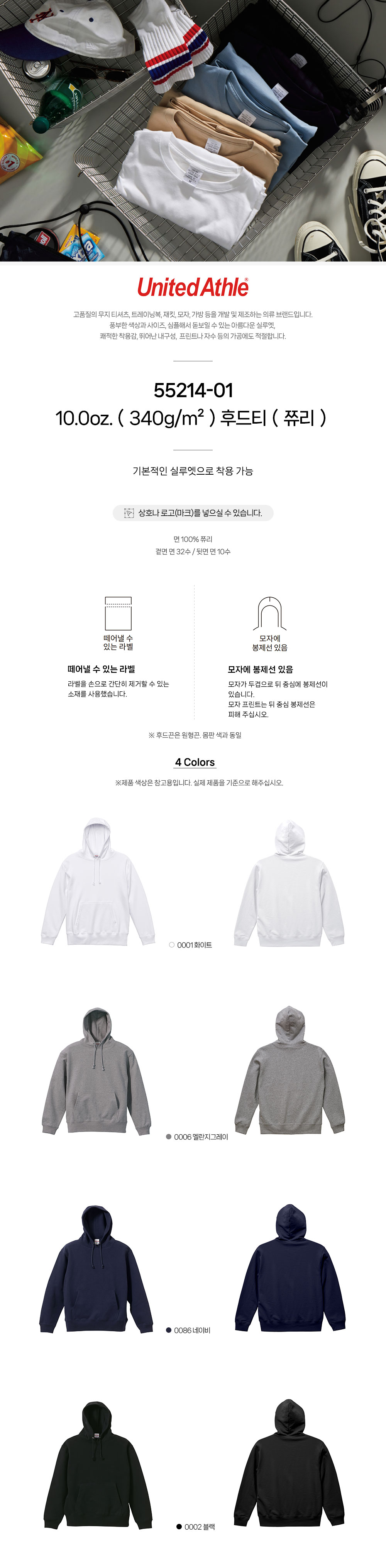 후드티(쮸리)(1.8인치 리브) 55214-01 10.0oz.(340g/m²) 유나이티드 애슬 United Athle
