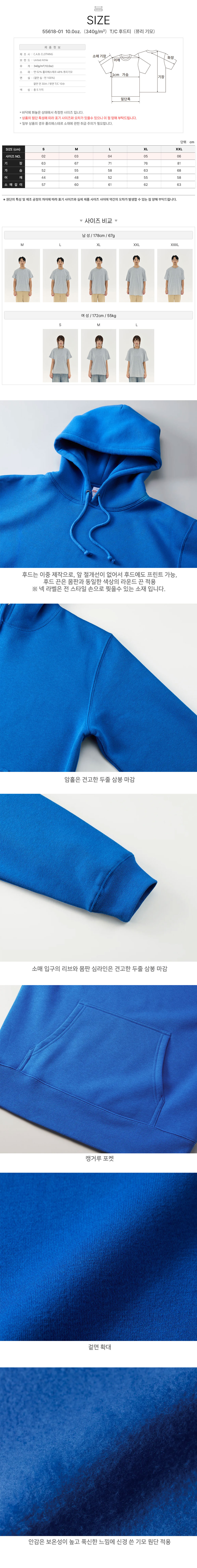 T/C 후드티(쮸리 기모)55618-01 10.0oz.(340g/m²) 유나이티드 애슬 United Athle