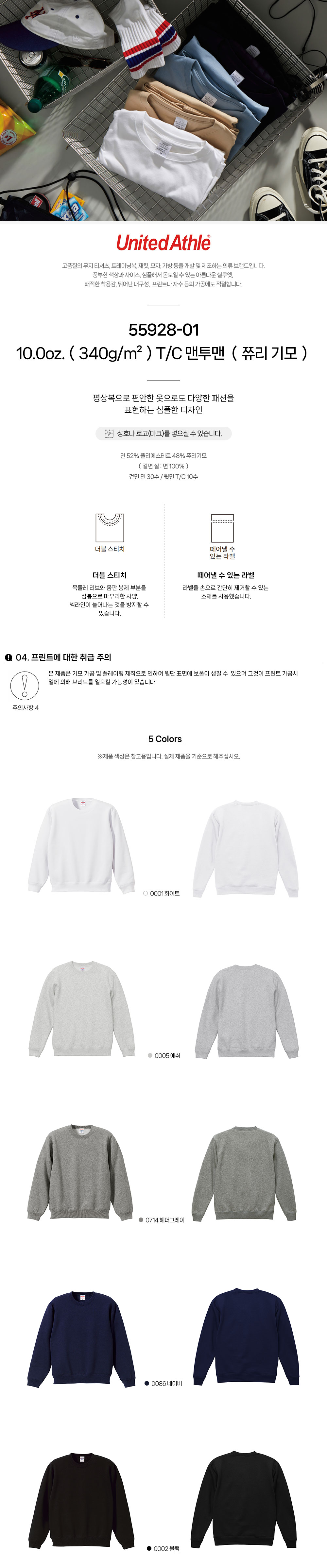 T/C 맨투맨 (쮸리 기모)55928-01 10.0oz.(340g/m²) 유나이티드 애슬 United Athle