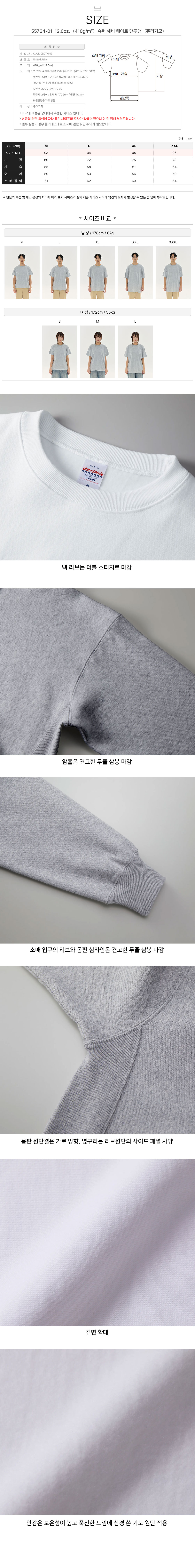 면 75% 폴리에스테르 25% 쮸리기모 /(겉면 실 : 면 100%) / 멜란지 그레이:면 65% 폴리에스테르 35% 쮸리기모 /(겉면 실 : 면 80% 폴리에스테르 20%)/ 겉면 면 20수 / 뒷면 T/C 8수 / 멜란지 그레이:겉면 면 T/C 20수 / 뒷면 T/C 8수 ※원단결은 가로 방향